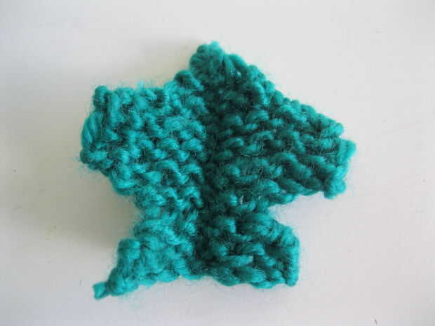 Hilera 15: Tejer 2 juntos, 1 punto, 1 revés, 1 punto, tejer 2 juntos
