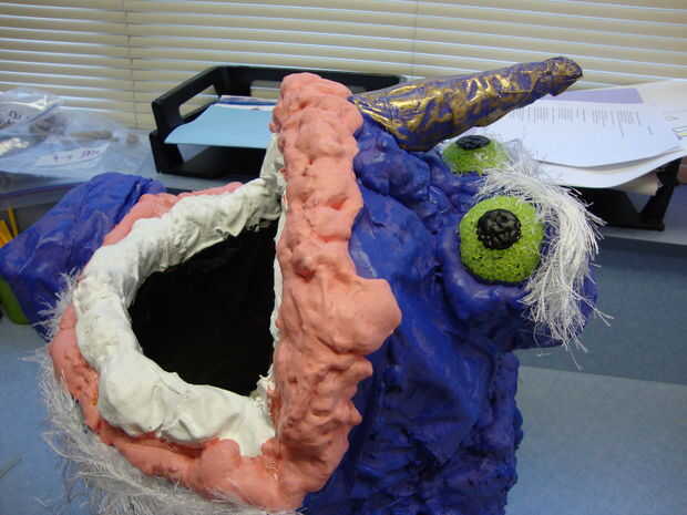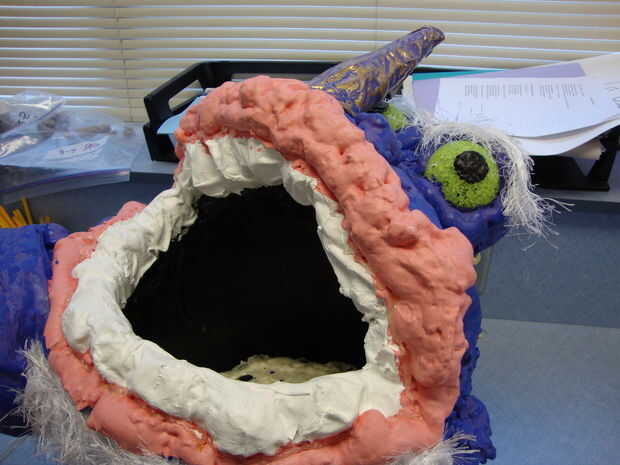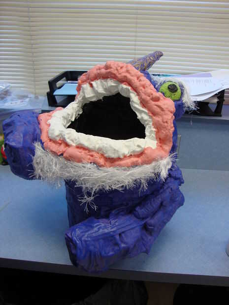 Lo llenan de dulces y que los niños vienen a su puerta y la mano en la boca de la bestia para su tratamiento! él también hace una gran caja para colectando box tops para la escuela o cualquier recaudador!