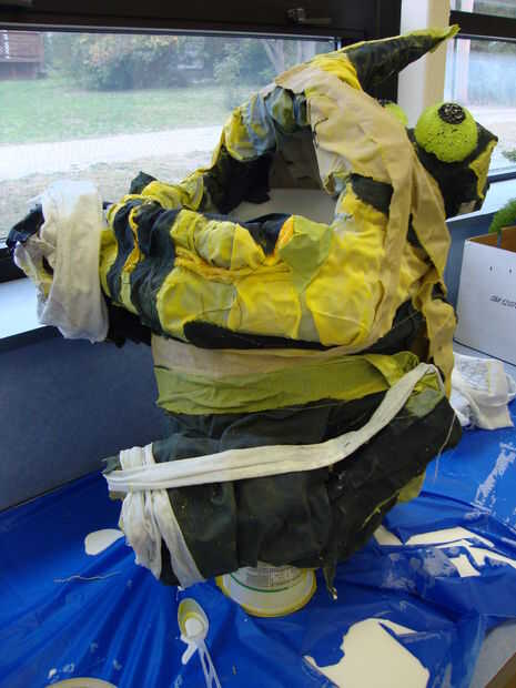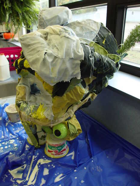 Tenía un montón de fundas de almohada puesta alrededor y había cortado en tiras y los utilizaron, algunos eran ropa vieja de la gota para las pinturas que les un poco cobarde pero es aceptable, trataremos con él más adelante para hacer que todo un color uniforme.