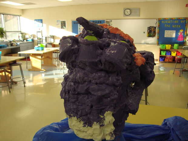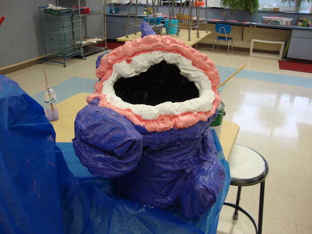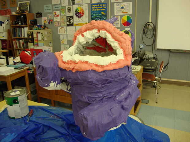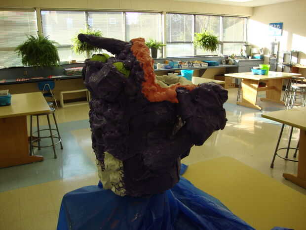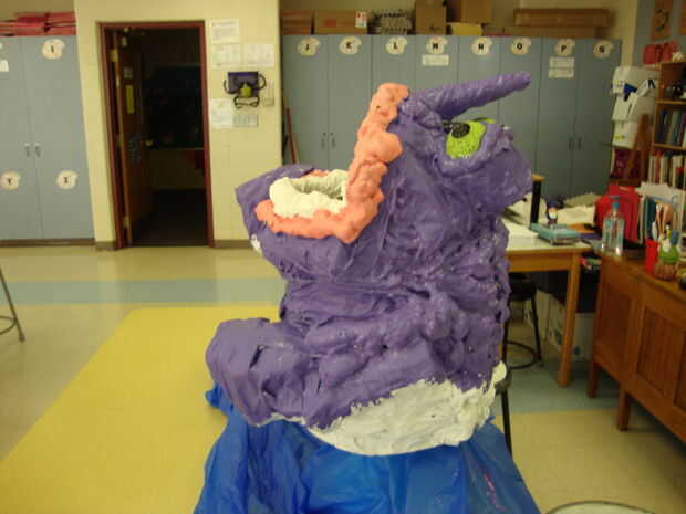 Una vez que el monstruo era todo pintado, asumió la base púrpura y mezclado en algunos azul, entonces golpeó las zonas elevadas también dar una variedad a su color de piel.