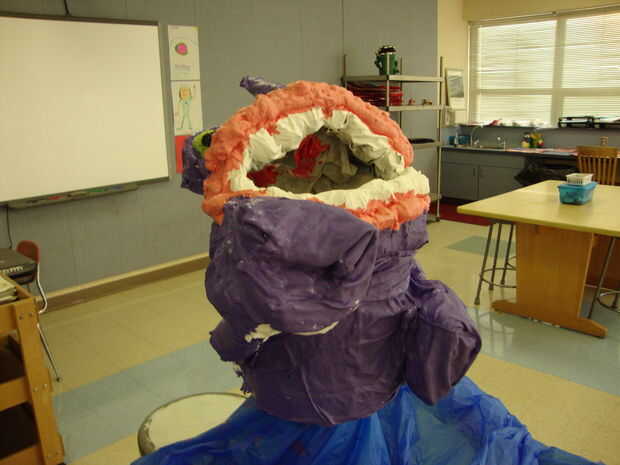Pintaba sus labios primero, luego sus dientes. Luego continué con la pintura púrpura. Estaba trabajando a lo largo me di cuenta maldito, necesito pintar el interior de su boca parece goofy blanco y, por lo que he pintado negro. En speck retro me habría arena dentro del cubo y utiliza un sonajero (grafitear) para pintarlo negro primero luego poner el monster junto, bla bla bla. Vivir y aprender!