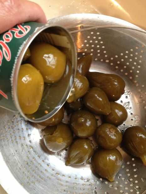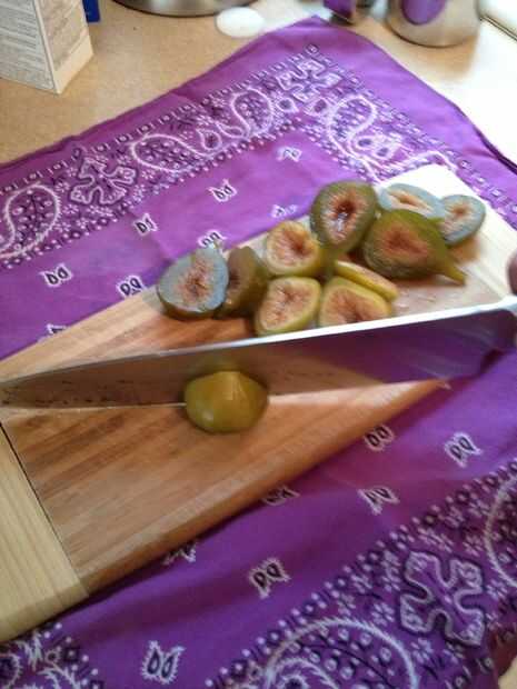 En un colador escurrir los higos descartando cualquier jarabe. Cortar los higos por la mitad a lo largo y colocar en un bol.