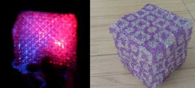 extraordinaria luz cubo está diseñado en la computadora usando el software 3D Rhinoceros y luego corte las piezas para montar. Una fuente de luz se ha colocado dentro de crear sombras interesantes. Las piezas de este proyecto pueden conectar uno al o