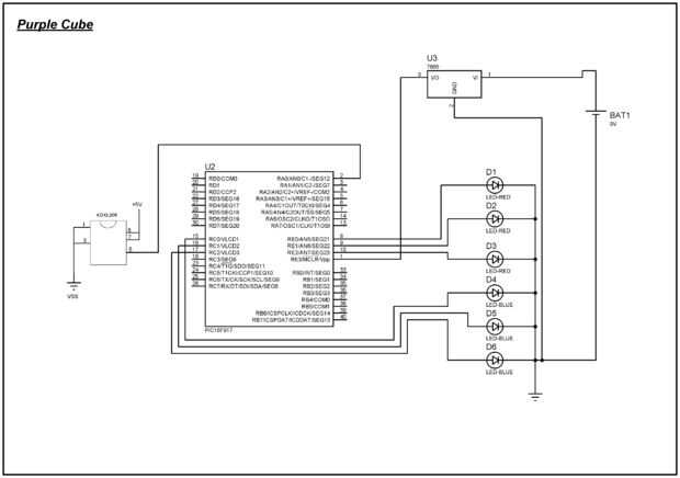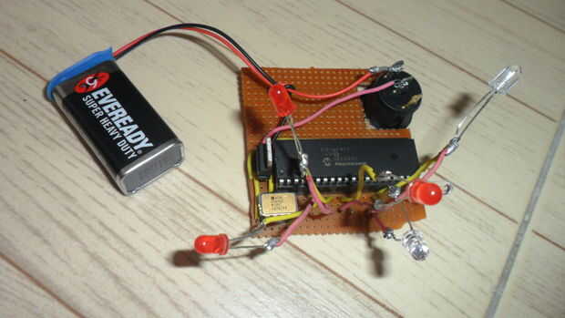 El circuito es simple. Consta de 6 LEDs, acelerómetro y el microcontrolador.