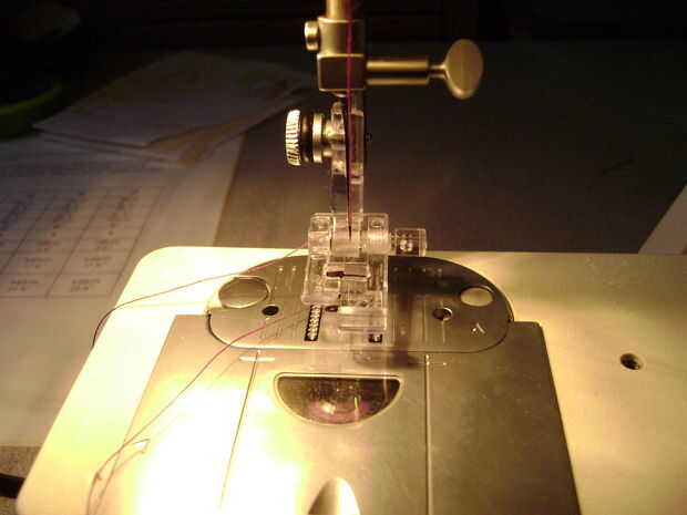 Pliegue y el borde inferior del perno. Coloque su pie de puntada invisible. Coser la puntada invisible según la técnica de la máquina de coser. Presione la costura hacia abajo.