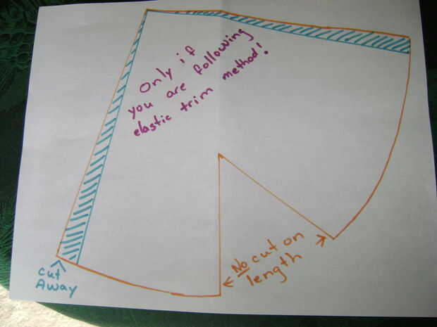 Una vez los dardos, tiene la opción de cómo desea terminar los bordes de las tazas. Puede girar la tela debajo y superior puntada para terminar... o puedes hacer como hice yo (foto 4). Puedes elegir un color de coordinación elástico sujetador y coser los bordes de la Copa. Si optó por ir de esta manera, las tazas que se deban recortar por los bordes laterales. Solamente los lados que se deban recortar. Mira el pedazo del patrón y ajuste como vas abajo de un tamaño... así que sería recortar 1cm, comenzaría en la parte inferior y ángulo hay nada viene de la parte superior (foto 4). La altura de la pieza no cambia así su no corte ninguno en la parte superior o la inferior (su margen no ha cambiado en la parte inferior). Todo lo va a quitar es lo que habría sido encendida bajo los lados.