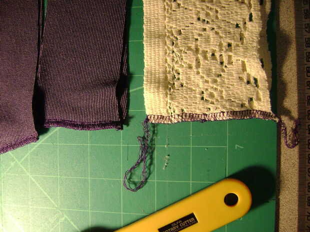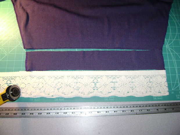 PIN y coser la puntilla a las falda derecho lados juntos que la costura lateral (foto 4). Puede que desee Presione la costura en el panel de la falda antes de coser la puntilla. La tela que estaba usando no llevó a cabo una prensa muy bien por lo que no encontré este paso necesario.