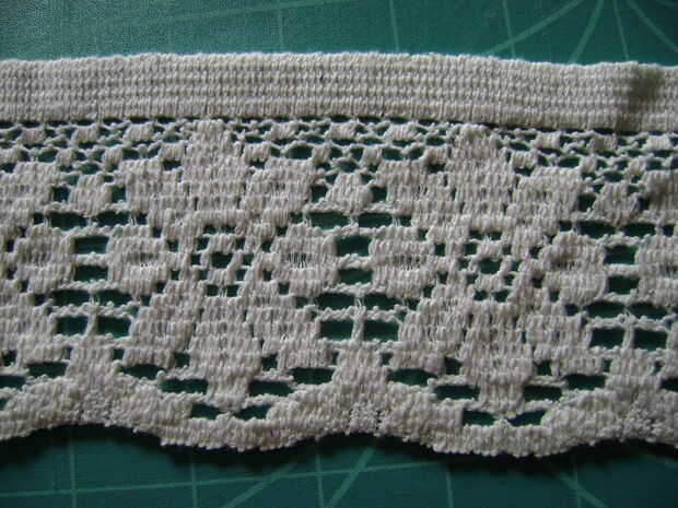Prender juntos los encajes de la falda, derecho con derecho. Coser y el encaje de la oleada a la falda. (Foto 5)