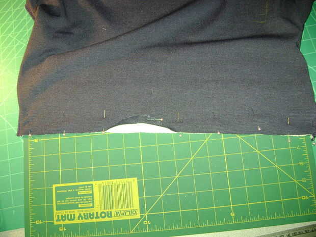 Pulse la costura de la falda de encaje/hacia la falda. Perno plana e hilvanar en su lugar. En el lado derecho, parte superior coser la costura hasta la falda de línea de no más de 1/4" de la costura. Si su uso tela de estiramiento usted necesitará utilizar una puntada a menos que su máquina tiene capacidad de estiramiento hilo (lana de nylon).