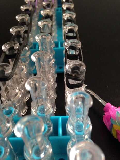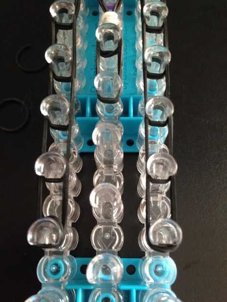 El súbdito púrpura tiene zapatos negros, pues torcer una banda alrededor de la clavija se muestra tres 3 veces y repita el procedimiento en el lado izquierdo, también.