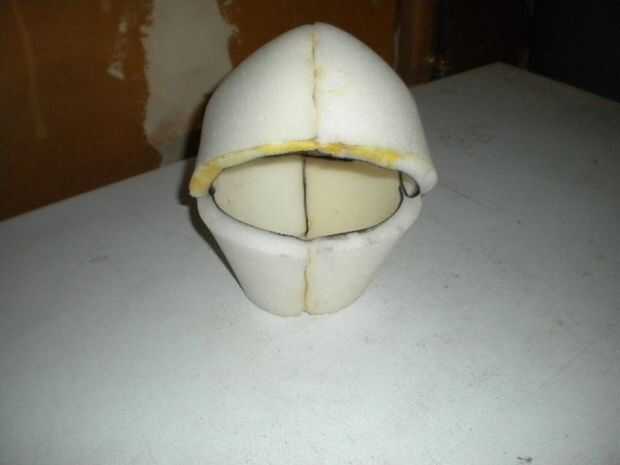 Primero cortar el patrón de cráneo de la espuma de mi espuma de 1/2" y luego pegarla con cemento de contacto. (Cuando pega el cemento de contacto se aplican cantidades muy pequeñas y dejar secar hasta pegajosos entonces pegan)