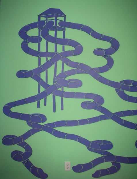 Había bosquejado la imagen deseada en el papel.  Yo sabía que deseaba que la imagen solo usé formas simples para inventar la imagen y la izquierda leve descansos entre las secciones con el fin de permitir que color de sombra y la pared penetrar a través de formas contiguas de color.  También lo bosquejó en lugar de la pared para más fácil tamaño y perspectiva.