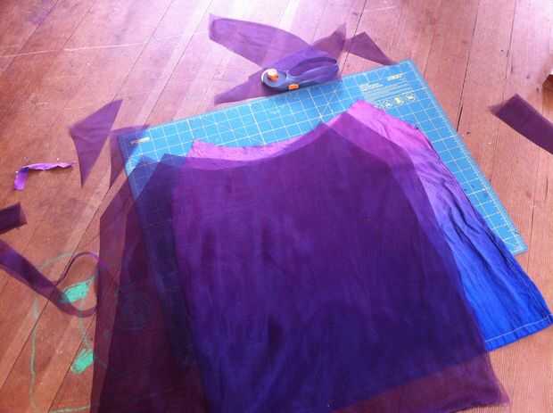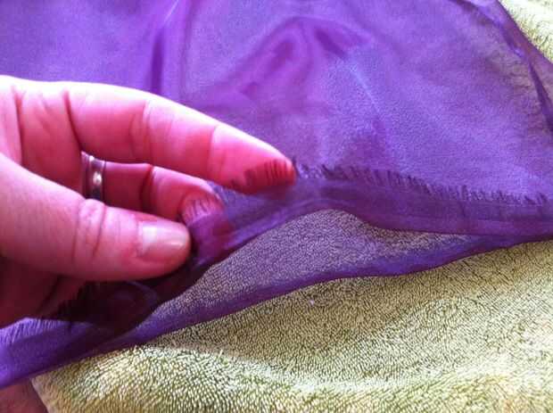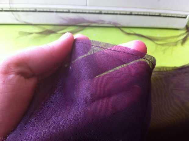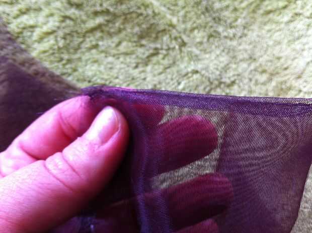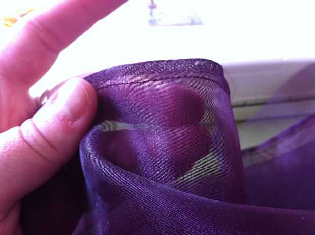 Quería la capa pura de ser solo un poquito más de la seda, así que me aseguré de dejar unas pulgadas extras en los dobladillos. Cosieron las capas transparentes en las costuras laterales justo como lo había hecho para el forro de seda.