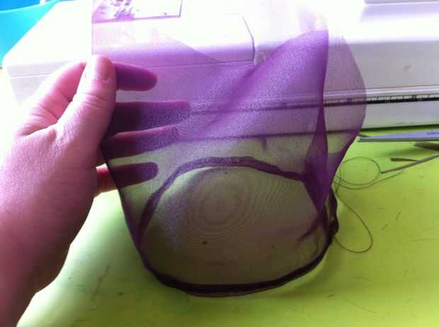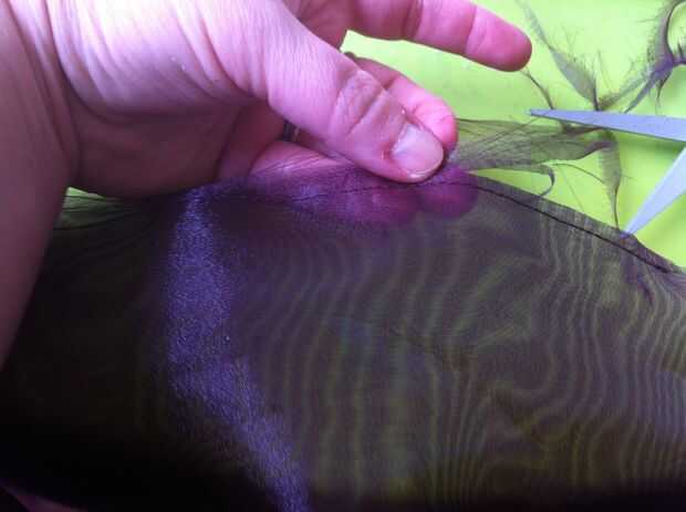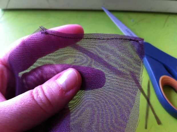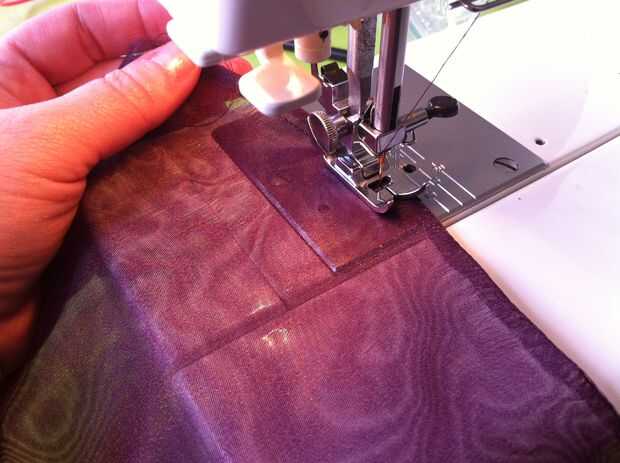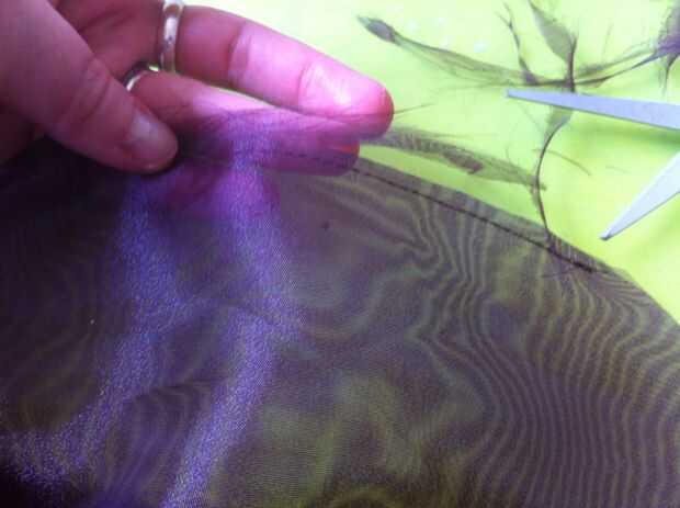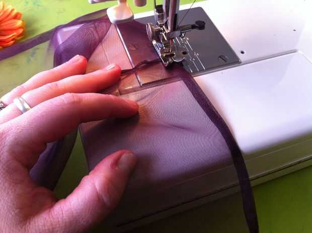 Coser una puntada recta a lo largo de la tapa, asegurándose que el borde de la organza es dentro de esta costura.