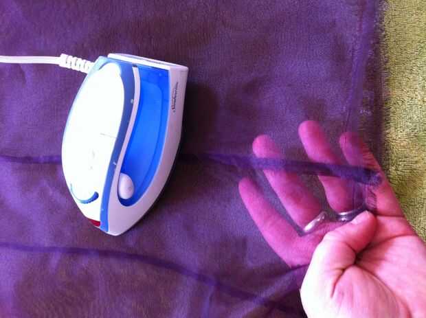 Para terminar el dobladillo de su material puro, primero coser una puntada recta cerca del borde - se usa una puntada muy pequeña. Ahora recorte como cerca de la línea de la puntada como sea posible sin causar nada que desentrañar. Doblar este borde sobre lo del hierro, pliegan otra vez y hierro para que el borde se oculta en el pliegue. Ahora coser una puntada recta a través de la tapa.