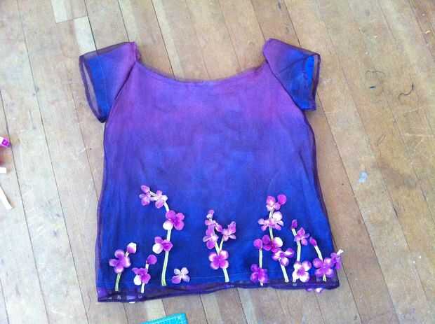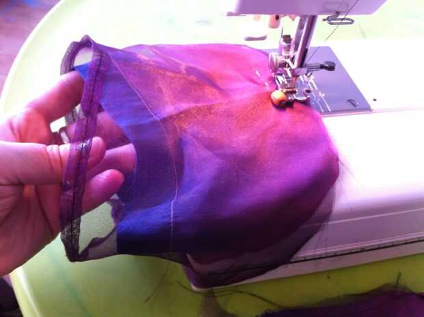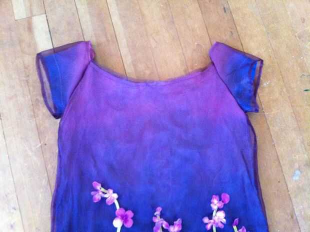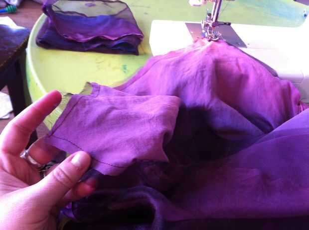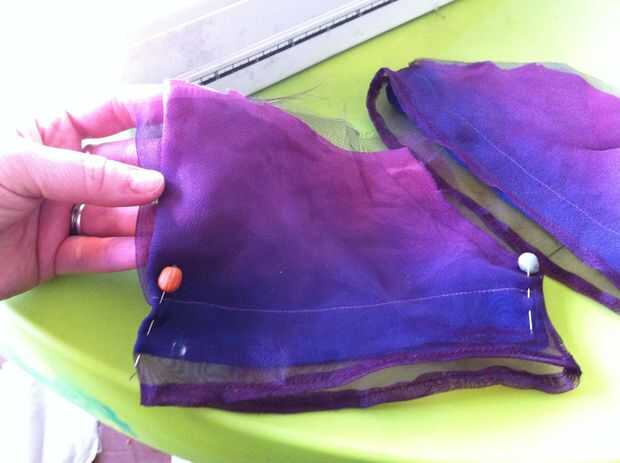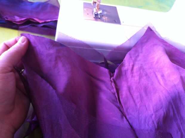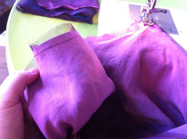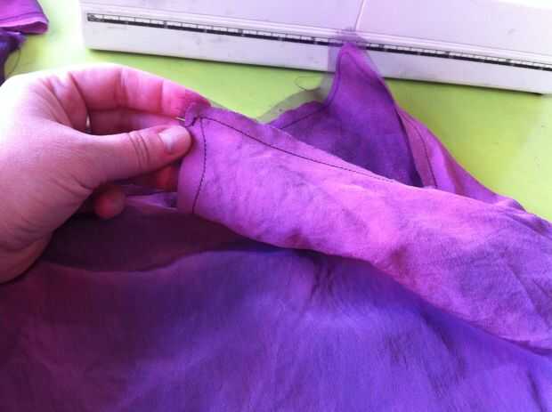 Girar la parte del vestido de adentro hacia fuera, dejar la manga derecha (Asegúrese de que los lados derecho del vestido y las mangas están uno frente al otro) y colocar las mangas en el vestido para que alineen las costuras. Coser las mangas al vestido, a continuación gire derecha hacia fuera.