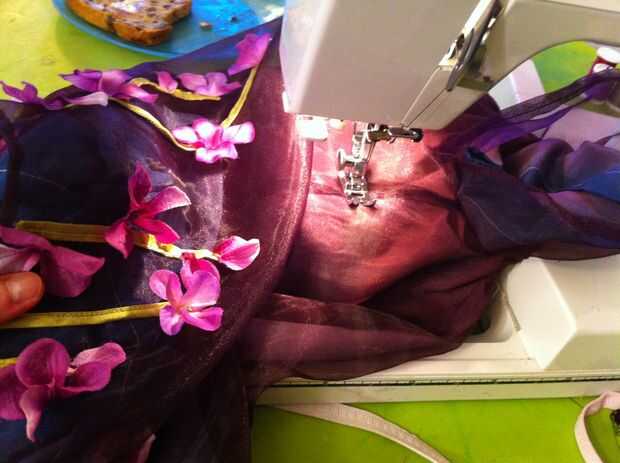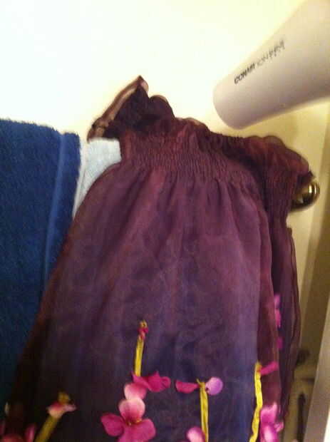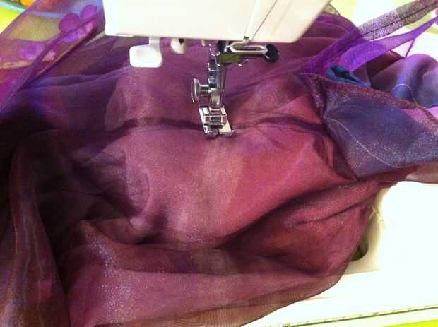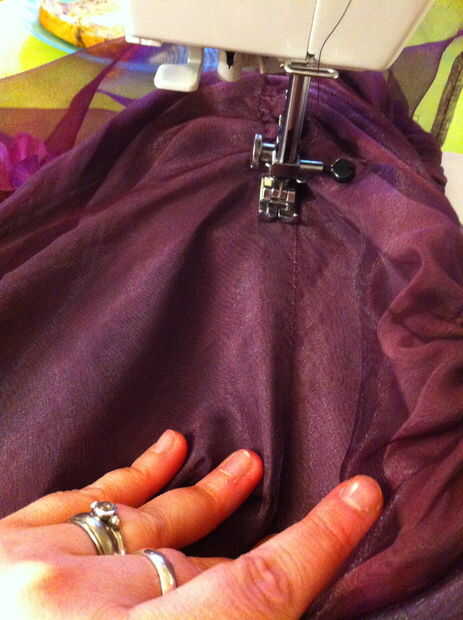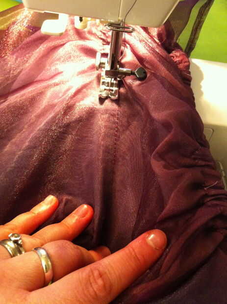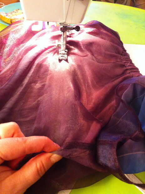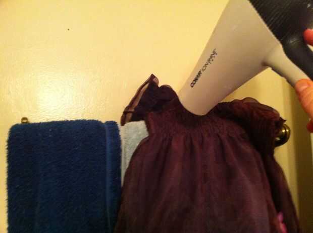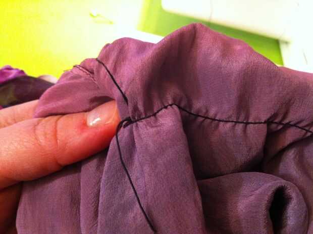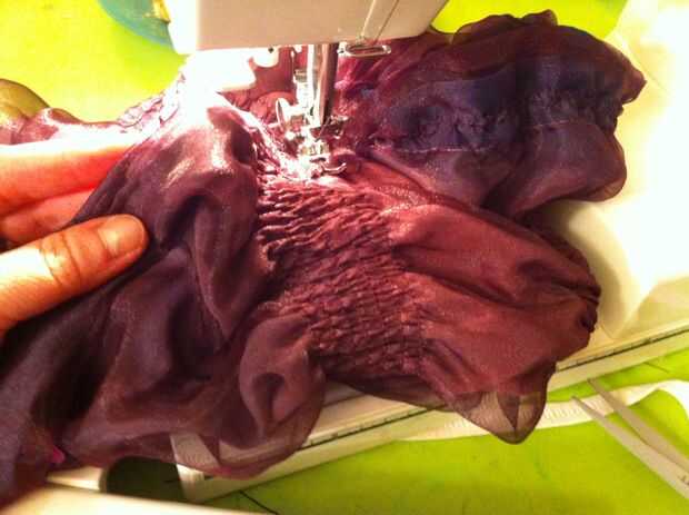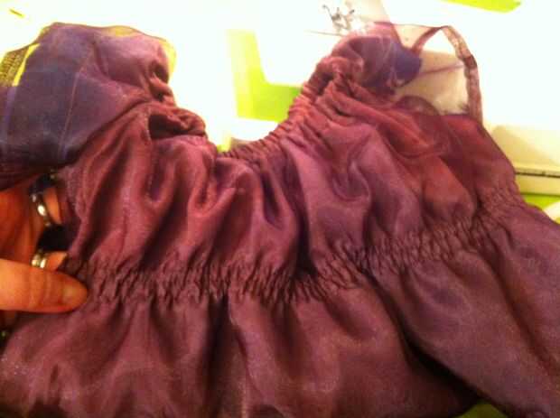 Telas livianas de peso tirará más fácilmente que las telas de peso medio (y esto no funciona muy bien en tela pesada). Si su tensión estaba bien y no fruncir la tela donde cosió, vapor. No quería preocuparse de sacar la plancha otra vez, así que rocía agua sobre la blusa del vestido y luego lo calientan con el secador de pelo. Trabajó tan bien y anima el elástico para aspirar y apretar las áreas fruncidas.