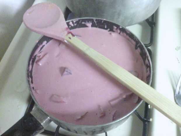 Esto es cuando la salsa se pondrá color de rosa/púrpura/Pepto Bismol. De que tipo de diversión para ver, casi como añadido colorante para glaseado. Consulte a continuación.