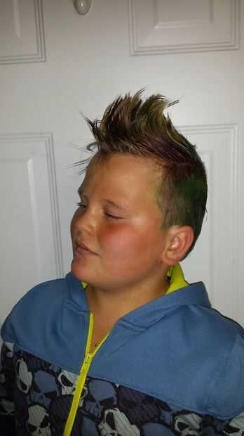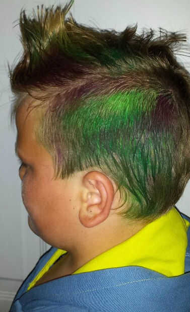 Con el pelo en la parte superior cortar un poco, solía más de la pintura de la cara púrpura y verde color de los Mohawk.