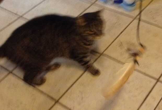 gatos les encanta estar entretenidos y les encanta plumas. Pero el factor de garra lo hace peligroso para simplemente sostener una pluma delante de un gato.La solución es separarse del filo de la kitty poniendo la pluma o plumas, sobre una cuerda en
