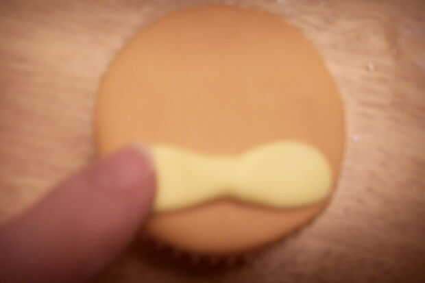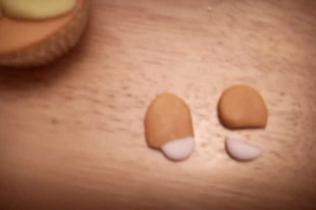 Corte el círculo blanco en la mitad, cortar un borde redondeado de cada círculo naranja. Pegan los lados planos.