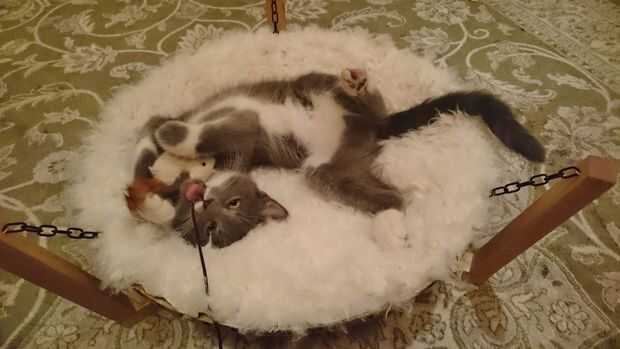 Hace aproximadamente una semana creamos un colgante gato cama (