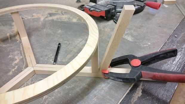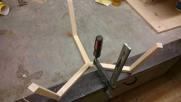 La sección central tiene una forma extraña a él que hace bloqueo juntos una tarea difícil. Después de un poco de pensamiento surgió la idea al molino de una sección en todas las patas. Entonces trazó un corte un pequeño pedazo de madera contrachapada fina que cabría debajo. Luego he añadido un montón de pegamento y tornillos pequeños. La presión generada Levante las piernas un poco. La abrazadera hacia abajo y deje que el pegamento seque. Si tienes una mejor manera cómo conectar estas piezas por favor deje me saber en los comentarios.