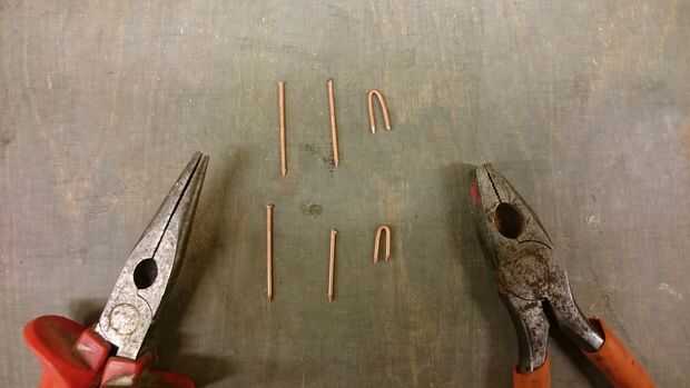 Mientras tanto preparar los clavos para que pueden ser utilizados para unir la cadena. Cortar las cabezas del y utilice dos pinzas para doblar en forma de U.