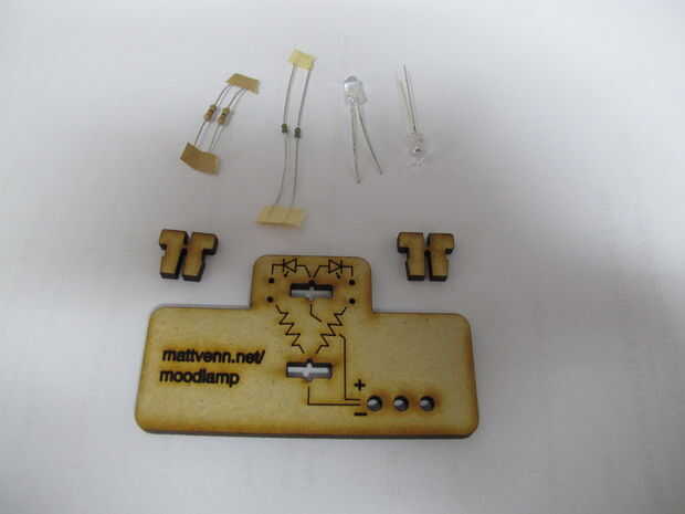 O, si quieres probar un corte láser circuitos - los archivos están aquí. Si el material es no 3mm, usted necesitará utilizar openscad para regenerar el dxf. Entonces usted también tendrá un par de leds y algunas resistencias.