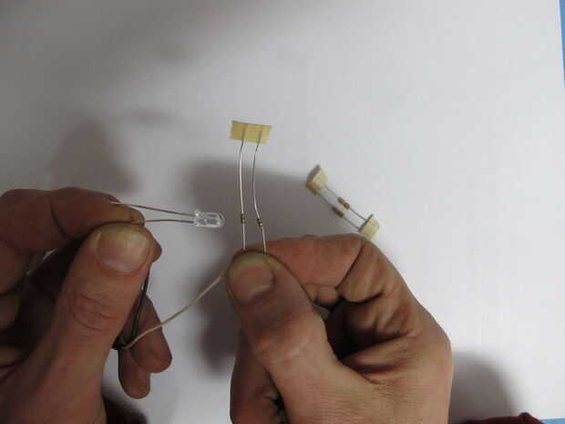 El kit te da 2 tamaños de resistencia, así que tienes algunas opciones. Uso la fotografía en esta página para trabajar los valores en el juego. Primero trataremos el mayor valor, y entonces si el led es demasiado débil, podemos utilizar el valor más bajo.
