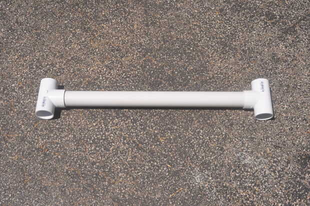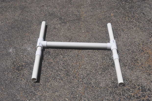 a continuación, desea poner las piezas juntas para asegurarse de que todo funciona bien. Tomar las piezas de dos posición 2 y un acoplamiento en cada uno de ellos. Luego, tomar las piezas de exceso y ésos a las piezas de posición 2 Conecte con los acoplamientos. Luego, tome el pedazo largo de dos pies de tubo de PVC (uno que no se han cortado) y 2 t. Conecte cada camiseta hasta el final de la tubería de PVC. Tomar esa pieza sólo hecho y había puesto en la parte superior del marco para que se deslice hacia arriba y hacia abajo. Luego, agarra a un amigo y que sostenga la parte superior para usted. Intente hacer un pushup y ver si funciona. No necesita a wights todavía.