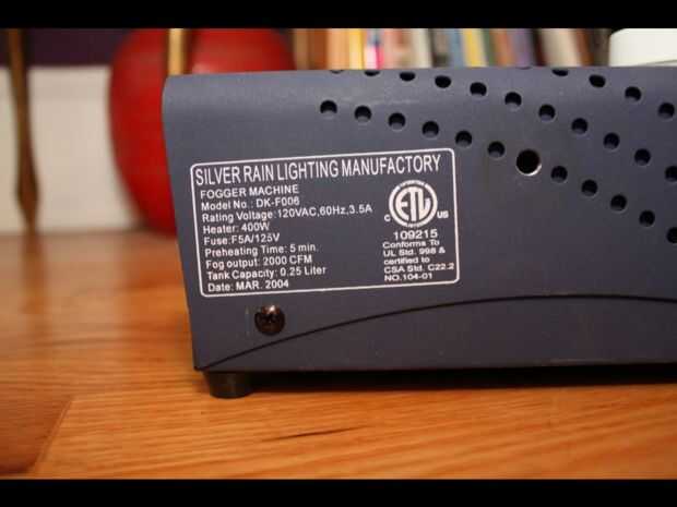 La máquina de la niebla tiene un conmutador (creo que destinado a ser un pedal) que provoca la niebla para emitir de la máquina cuando se presiona. La máquina toma un tiempo para calentar antes de que emitirá la niebla y el conmutador también tiene una luz indicadora.