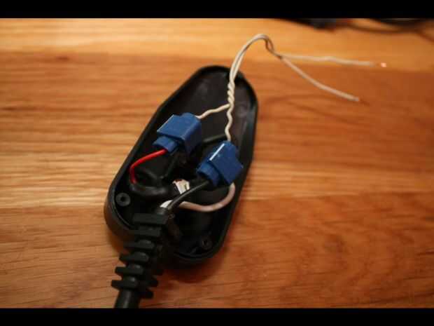 Quería mantener el interruptor como era originalmente y también ser capaz de desencadenar la niebla de la arduino, usé automotriz alambre estilo "golpecitos" para aprovechar los cables que van al interruptor. Estas conectado a la misma clase de relé usado en la pistola de clavos.