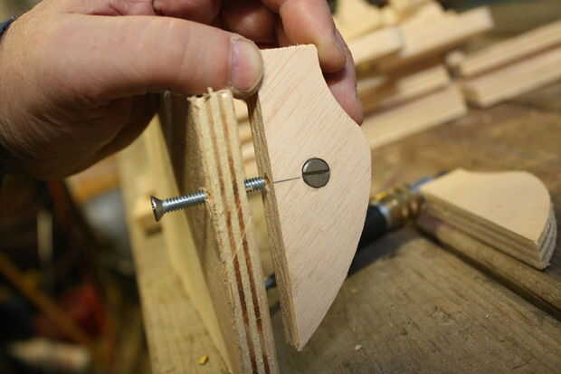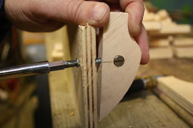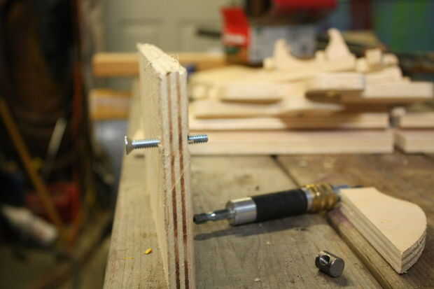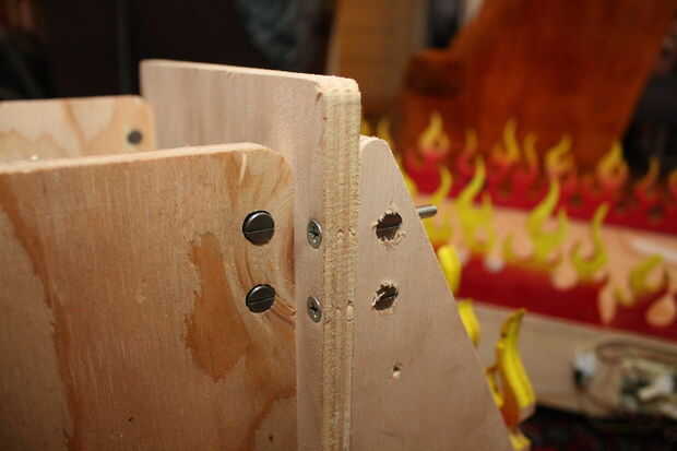 Usé crossdowels y tornillos para unir las piezas de madera contrachapada para el montaje del motor sobre todo.