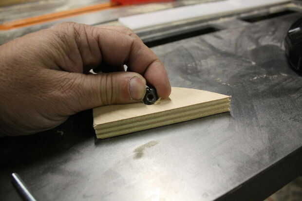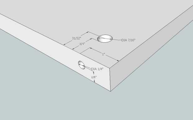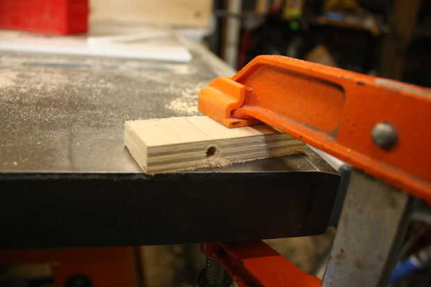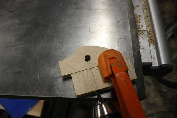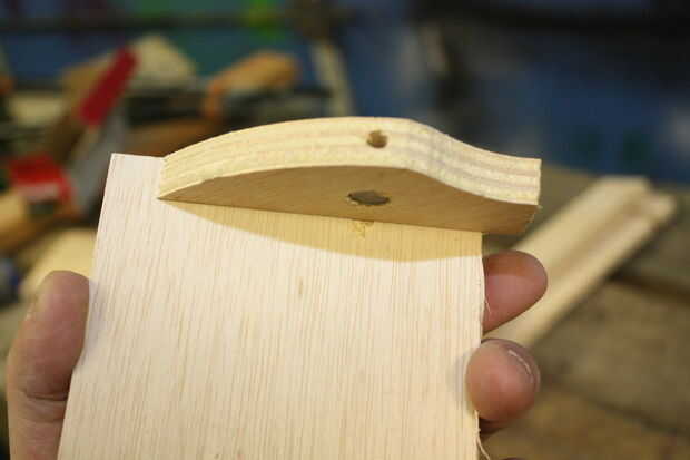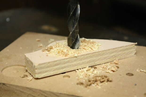 Entonces es perforar un orificio en el borde de la madera contrachapada que intersecta con el agujero perforado encima de.