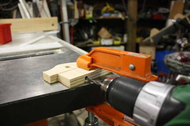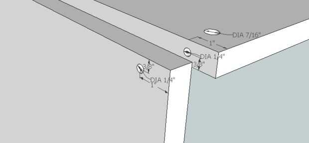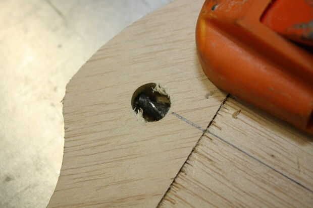 A esto implica perforar un agujero a través de la cara de la madera contrachapada. El agujero debe ser lo suficientemente grande para la crossdowel para encajar en y lo suficientemente lejos del borde de la madera que la madera no se debilitará. Dejo un espacio menos el espesor de la madera contrachapada para la fuerza.
