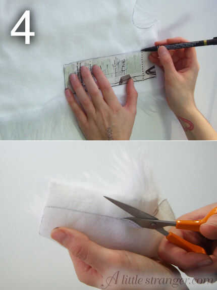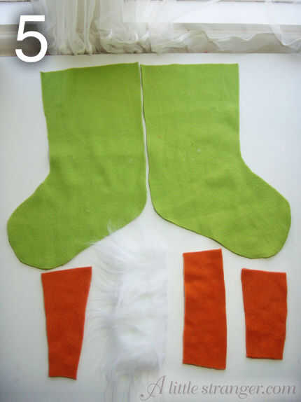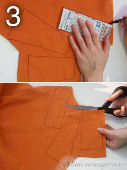 4) Marque y corte la tela de piel blanca, observando el grano de la piel (quieres hacerlo hacia abajo)