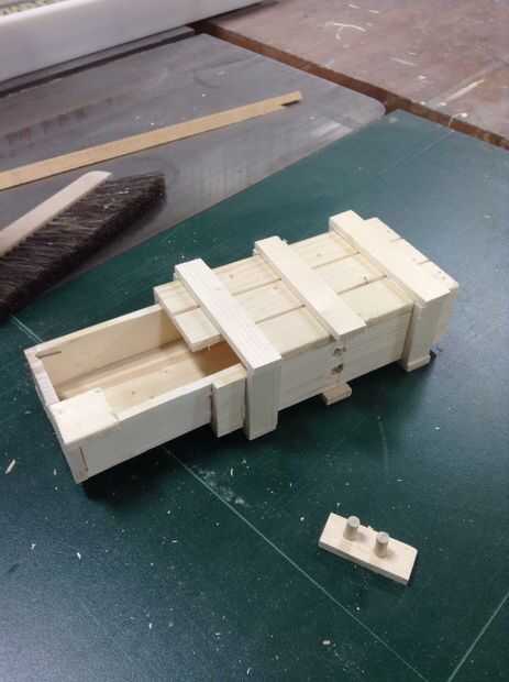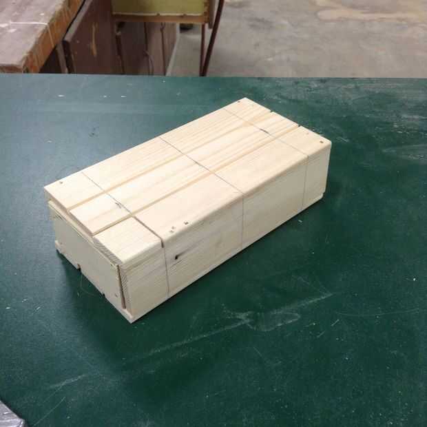 A continuación Perfore (Asegúrese que el cajón está en la caja) dos. 25" agujeros. 75" de cada lado donde no pegue las tiras. Taladro medio camino a través de la tira que no pegue en y y pegar el pasador (de. 75" de largo) en los agujeros.