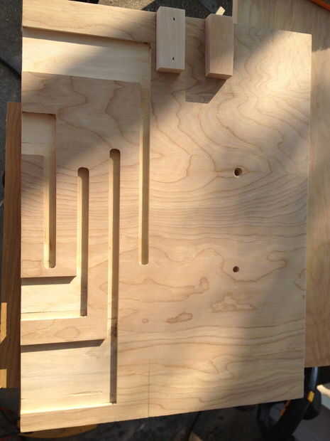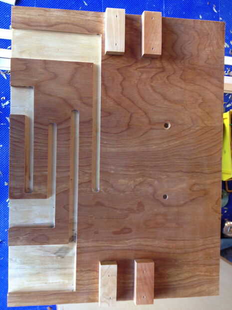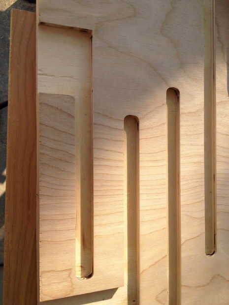 Que utiliza un router para esto y consiguieron los cortes rectos por fijación de guías de madera a la madera contrachapada para mantener el router donde quería ir.