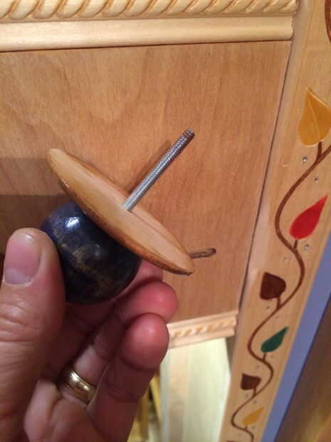 En la parte inferior de cada palanca, he añadido un botón de madera enchufe. Lo hice por lo que sería una sensación definida cuando una palanca fue deslizada izquierda o derecha, caería en uno de los agujeros perforados en el paso anterior.