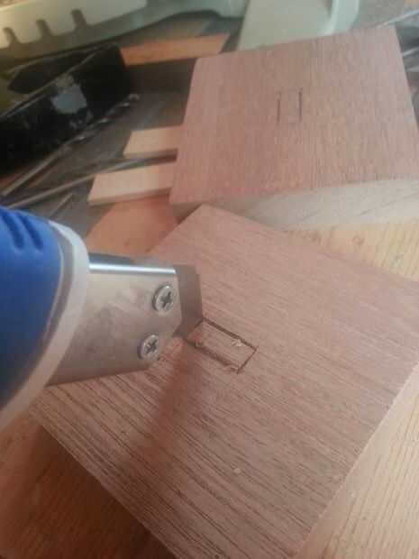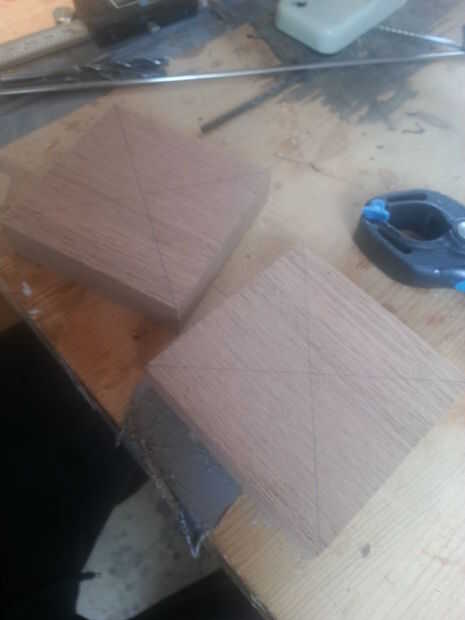 Ahora hacer dos buriles para caber el pasador central. Los Avellanadores se hacen en dos bloques separados. No perfore el canal. Para hacer la avellana una dremel es útil.
