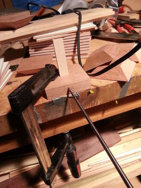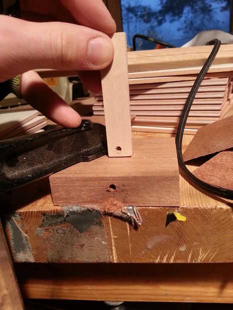 Hacer que el pasador central. Se trata de las imágenes de ver pedazo de madera de abedul. Hice esta pieza laminando dos tablas de inicio de fuego juntos. (1.picture).