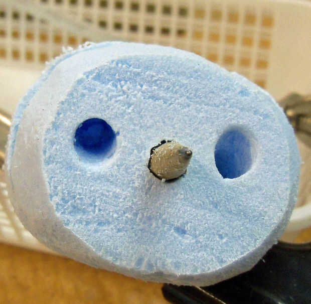 Una vez que tengas un plan, cortar o taladrar los agujeros. Encontré un cortador de corcho en el garaje y funcionó muy bien en azul espuma de poliestireno. Es básicamente un tubo de metal que es afilado en un extremo. Presione y gire para cortar un agujero. Usted puede cortar los agujeros hacia abajo o en diagonal. También puede cortar 'codo' agujeros, en un ángulo de la parte superior y la parte inferior hasta cubrir los agujeros forman un 'agujero doblado'. Utilice un pequeño, redondo archivo para limpiar los orificios.