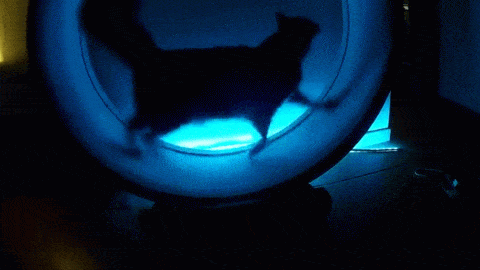 Puede Agregar esteras al suelo a su preferencia. Ahora van encontrar un gato o un perro pequeño y entrenarlo con juguetes, comida y mucho amor para conseguir que va. Después de 1-2 días de entrenamiento mi gato pasa al menos una hora o dos hasta subirse a la rueda y ejecutar por sí mismo.