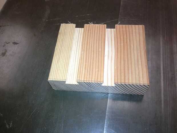 Pasé la valla que había aproximadamente 1" entre la parte superior de la broca y la guía, y observó que la posición exacta de la valla (en la regla de Sierra de mesa que se encuentra en la parte delantera de la mesa de la sierra o router) en 34 1/8". Coloqué el pedazo de abeto de douglas contra la valla para que el router cortaría con el grano, y corrí la madera (haciendo una cola de pato hembra). Moví el cerca de 1/4" más lejos de la broca (a 33 7/8") y funcionó la madera nuevamente, ampliación de la cola de Milano. Luego pasé la valla un adicional 1 ¾" de la broca (32 1/8") y funcionó a través del madera otra vez (hacer otra cola de Milano en la mujer. Y finalmente, se trasladó cerca de la otra ¼" aún más lejos de la broca (a 31 7/8") y funcionó la madera nuevamente, ampliación de la cola de Milano 2.