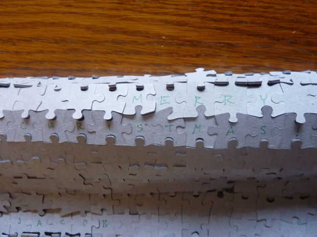 También escribo mensajes al azar en diferentes áreas del rompecabezas por diversión y para maximizar el porcentaje de piezas con la escritura sobre ellos.