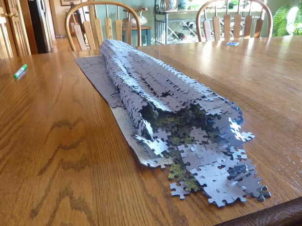 Prefieren el método de burrito de desmontaje - rápida de recoger el rompecabezas en un extremo y comenzar a rodar hacia el otro (ver imagen). No puede ser perfecto, pero puede fácilmente deslizar el extremo y desmoronarse en la caja.