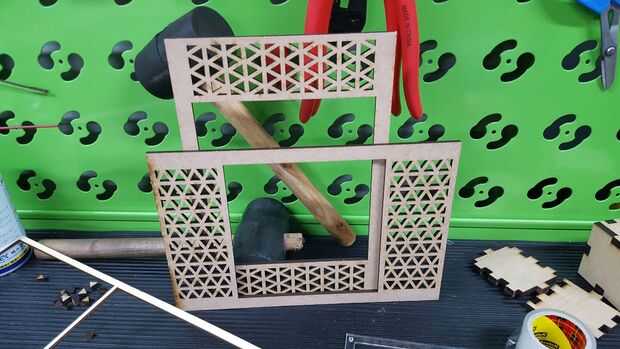 > Paso 3-3: preparar dos estructuras de madera como el plano adjunto.