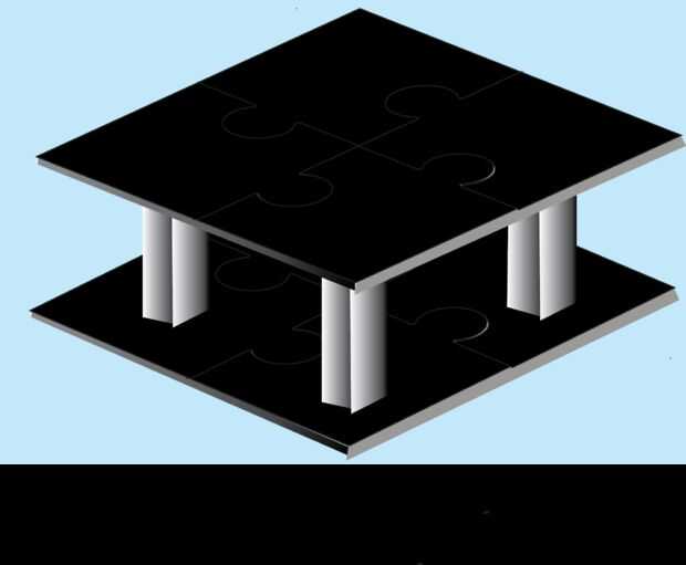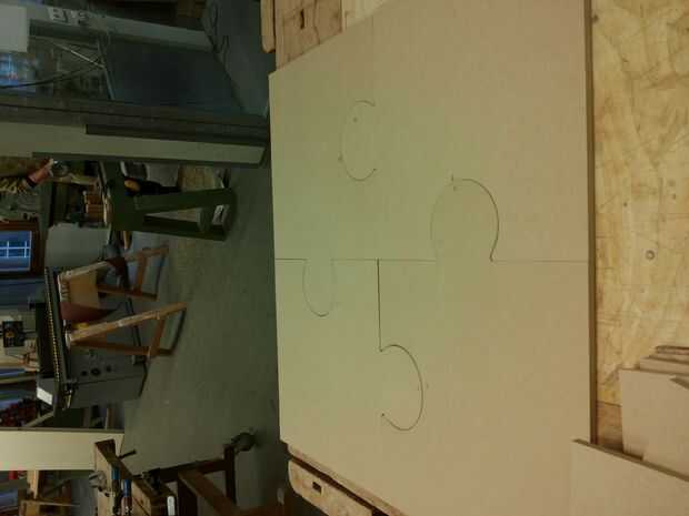 Nuestra idea era hacer un cuadro de rompecabezas de 4 piezas para que pueda utilizar cada parte como una mesita. Y si pones las 4 piezas juntas tienes una mesa grande.