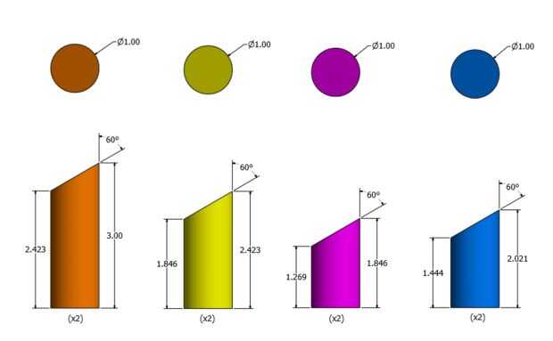 Establezca su tabla, ingletadora o sierra de cinta en un ángulo de 30 grados. Corte 1" tacos a las longitudes que se muestra.